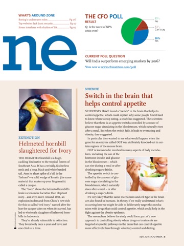 Equally important is the need to ensure that the experience and knowledge of todays CFO is harnessed for use by the next-in-line through mentoring platforms. The CFO Institutes programmes and publications have been designed as a means to this end, and help the finance fraternity meet their new benchmarks for success. This is a monthly publication.