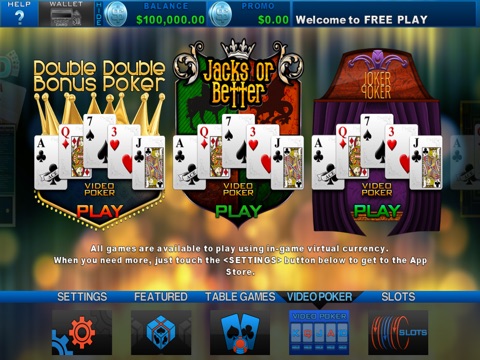 Classic Video Poker and Progressive Titles: Jacks or Better, Deuces Wild, Joker Poker, Double Double Bonus