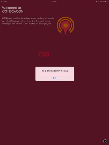 CGI Beacon platform is a cloud-based platform for mobile apps that triggers proximity-based and context-aware messages and actions to end-customers or employees. For example a notification can be sent to a user when entering a store or department, or the platform can analyze user behavior such as movements in a facility, or average queue times.