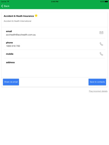 Contacts can be easily shared via email and SMS or can be saved directly to the phone.