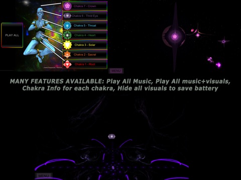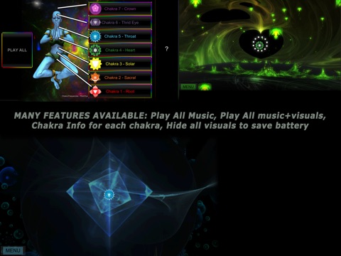 • 7 Chakra songs, each with their own 3D/HD visuals