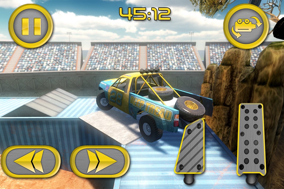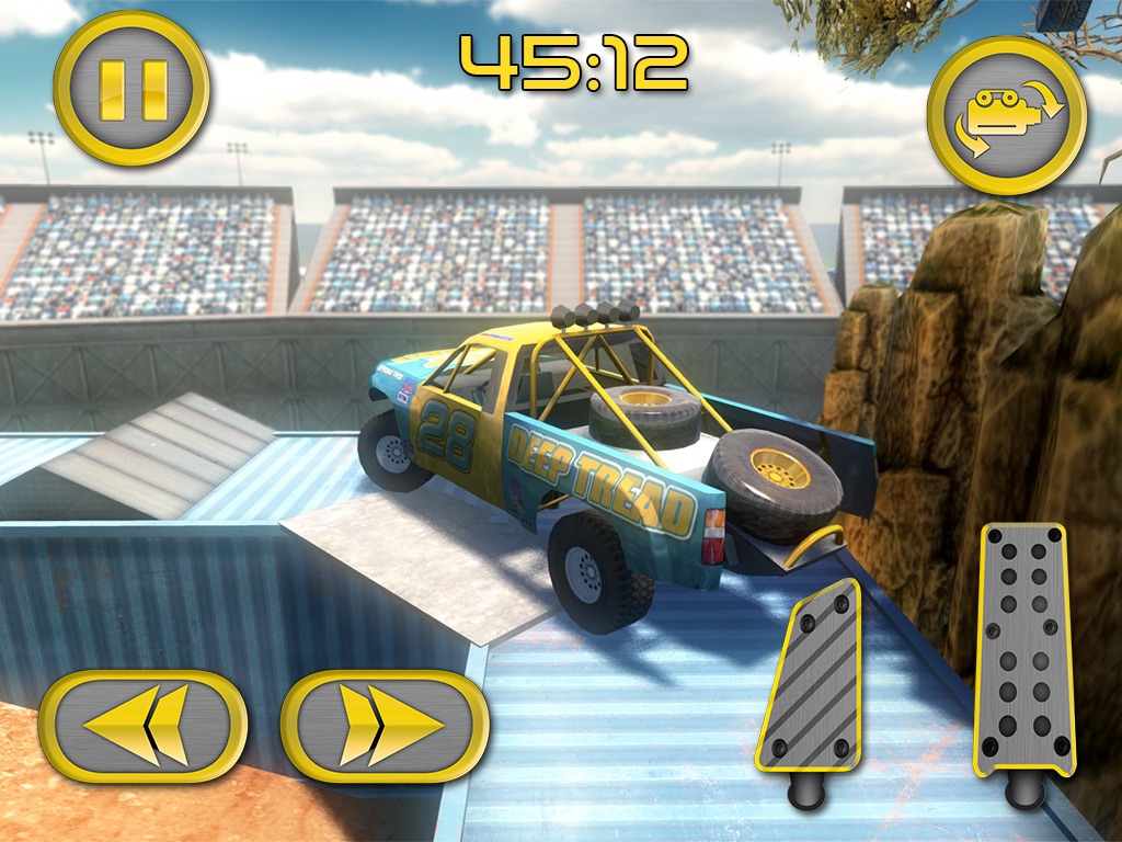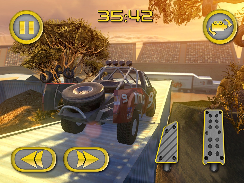 This game has amazing graphics BUT I hope that they will add the following: -choosing between button steering, tilt steering and or a steering to turn wheel (different methods to turn the car). -camera that stays directly behind the car at all times and one for cockpit view aka first person. -and vehicle customization... To choose how stiff you want the springs, color of the vehicle, size of tires and all that stuff. -and last but not least, multiple vehicles