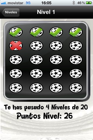 Para superar un nivel hay que acertar 15 de las 20 imagenes del nivel, para ello se pueden pedir pistas, se disponen de 10 pistas. Se restarán puntos al introducir incorrectamente el nombre del futbolista o al pedir una pista.
