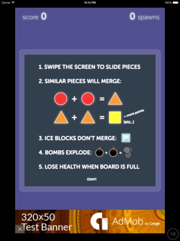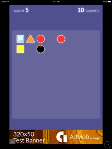 Its a time limited game, the spawn of new shapes speed up when more shapes are on the screen, and could be really fast when the shapes nearly filled up the screen, hopefully, the bombs will come to the rescue, merge two bombs will fire up an explosion which will clean up lots of shapes around it.