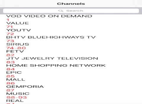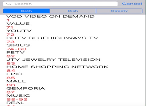 Ok. I developed this app for my personal use. But I have had so many request for it that I decided to put it in the app store. When you travel, have you ever wanted something to tell you what channel your station is on? Well here is the solution. Let me start off by saying. This app will NOT tell you what tv shows are coming on. It is not a program guide. It is a simple app that lets you search for a channel. For example. Say you are traveling and you would like to know what channel tvland is on. You just start typing tvland and it pops up with the corresponding channel number for dish or directv. Thats it. Let me add: I tried to make sure that all the channels are current. But if you find any errors please send me an email and I will update the changes in the next update. This app does not include local channels. It is just a simple app that will quickly give you the channel for the most common used stations for dish and directv. Music channels are included. Enjoy.