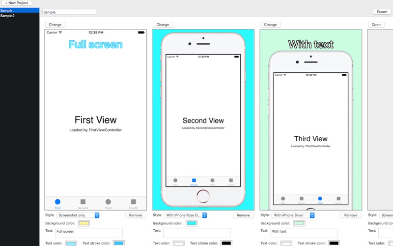 Chaney exports various size screenshots.