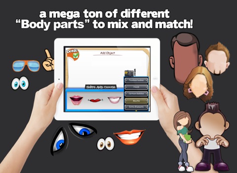 • Choose from HUNDREDS of elements including bodies, heads, eyes, mouths, hair and more. You can customize your characters or avatars in countless ways!