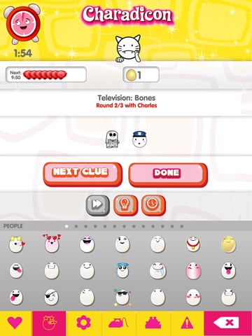 Experience a new way to play charades. Players pair up in a two person team in a texting-style guessing game using 100s of our unique and groovy emoticons. Its a race against the clock for you and your teammate as you take turns giving emoticon clues and guessing titles from your favorite categories including: Movies, TV, Music, and Books. You can also be inventive and play the game freestyle with friends in the Create Your Own Phrase category! Be a Charadicon collector and master a new language you already know! Get Connected! An Icon Is Worth A Thousand Words!™