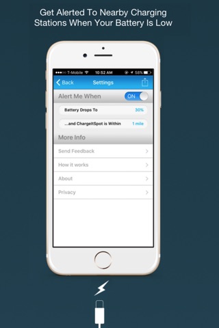 • When your phone battery is low, receive a notification with directions to the nearest ChargeItSpot