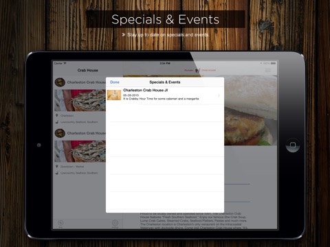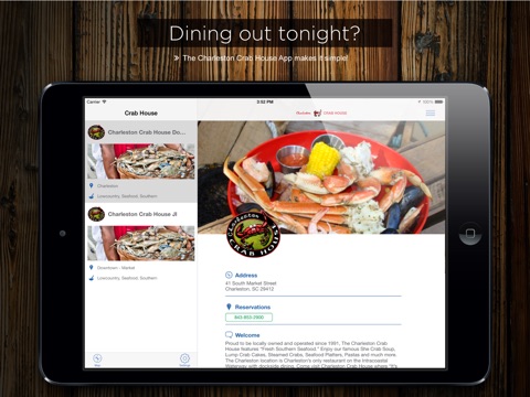Features of the Charleston Crab House App: