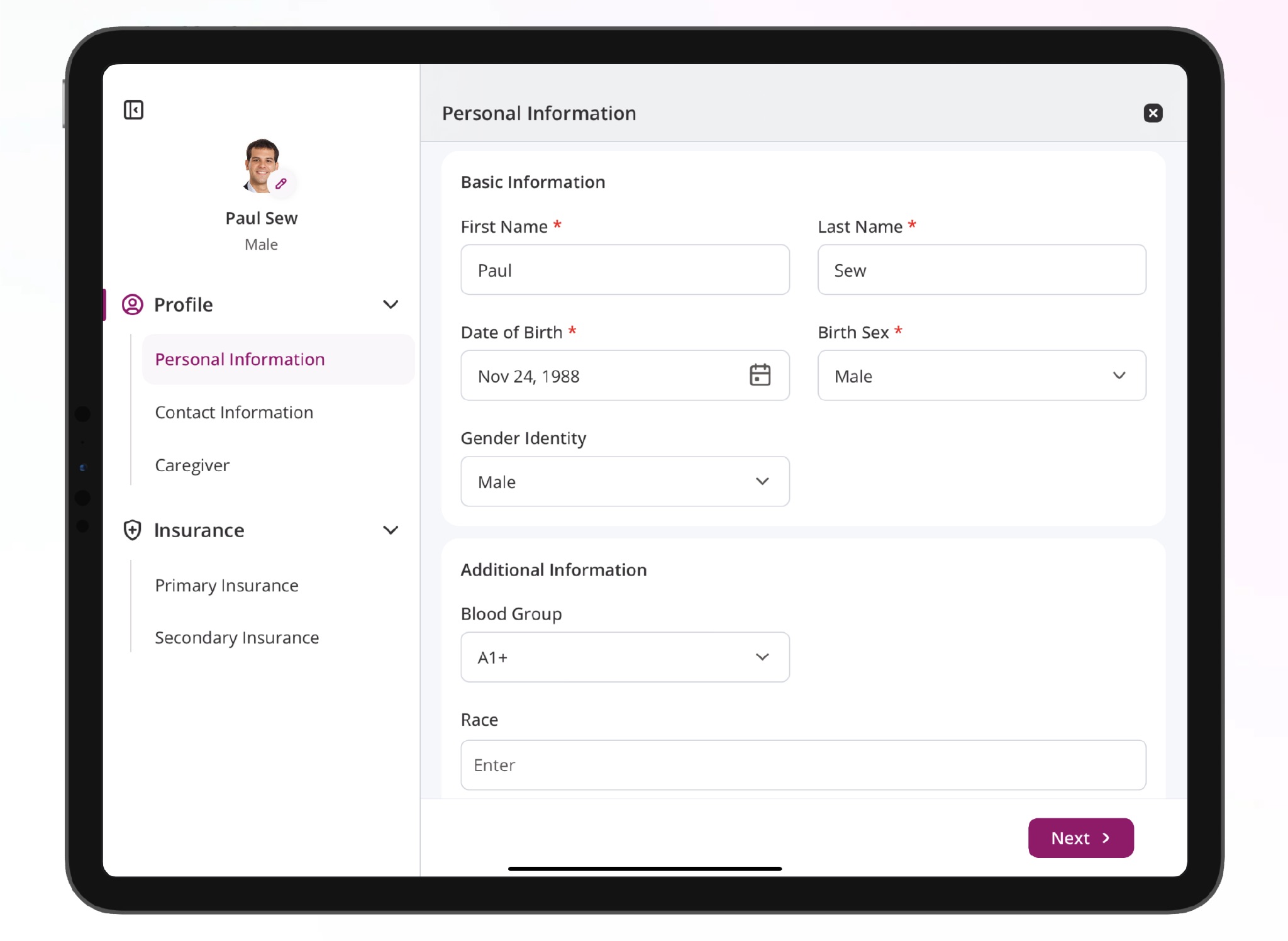 - Patient can edit Demographics and Insurance Detail