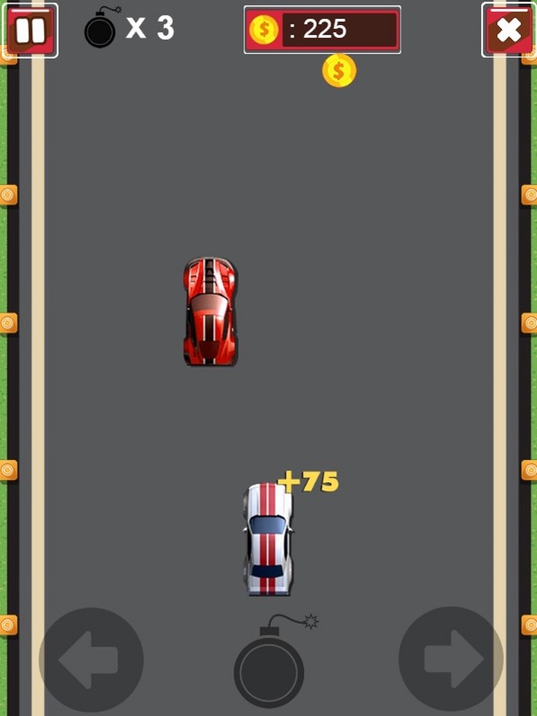 Controls are simple left and right to move your car. There is bomb icon also use it to blast other cars.