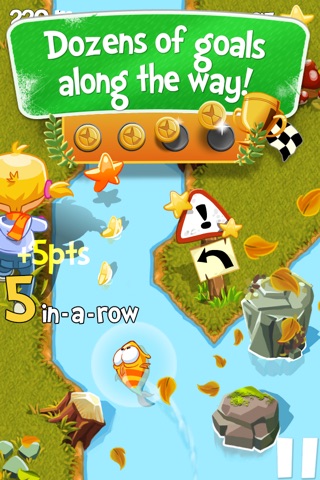7-year-old Mathilda lets her helpless goldfish, Yello, taste freedom in the local wild creek. Help Yello to escape Mathilda and navigate the poor fish through a rough adventure in the dangerous river filled with rocks, burning logs and piranhas!