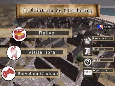 Chateau de Cherbourg est une application développée par BIplan Cherbourg en Relation avec Loffice du tourisme de Cherbourg. Cette application permet a lutilisateur de se plonger dans lancien château de Cherbourg tel quil existait au XVIIe siècle grâce a une série des vues panoramiques en 3D.