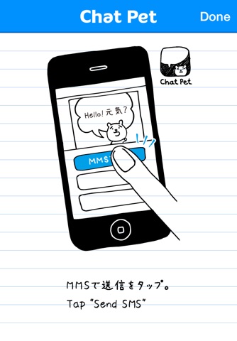 A cute character delivers your message. Character image is attached to iMessage/MMS.