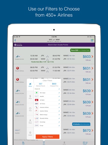 Very nice app. Should only give the option to choose your preferred airline or a partner one in order to get your mileage points.