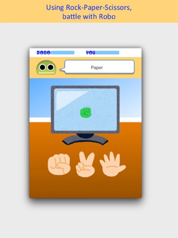 Using Rock-Paper-Scissors, battle with Robo. If Robo says to lose, you should tap the button of losing yourself. Wow, its difficult to lose on purpose..