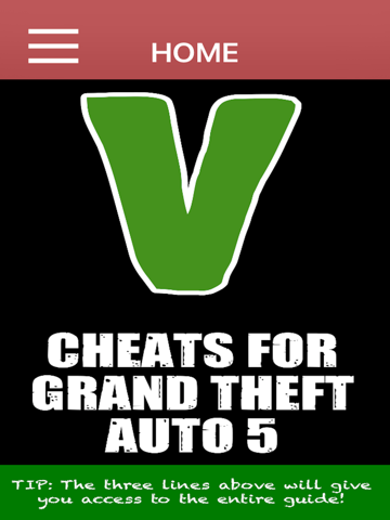 Get the ultimate app that has all of the Grand Theft Auto V cheats that you have been looking for. This app will make it quick and easy to locate all of the cheats you need to have an awesome time playing GTA 5.