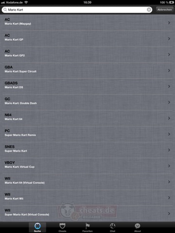 Durchsuche unsere rund 300 000 Cheats sortiert nach System, Typ, Art und Autor. Hier findest du alle Top Spielekonsolen wie PC, PS, PS2, PS3, WII, XBOX, XBOX360, PS VITA, GBC, GBA, IPHONE ... bis hin zum Amiga. Rund 150 Spielekonsolen kannst du nach Cheats & Tipps durchstöbern