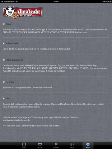 Mit dieser App hast du rund 250 000 Spieletipps & Cheats immer in der Hosentasche bei dir. Unter anderem findest du CHEATS, TIPPS, TRICKS, LÖSUNGEN, MOVIES, CODES & VIELES MEHR in dieser App.