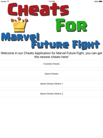To get the newest Cheats For Marvel Future Fight install this application and be the best in game!