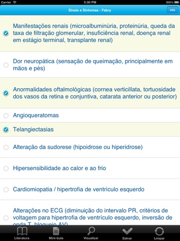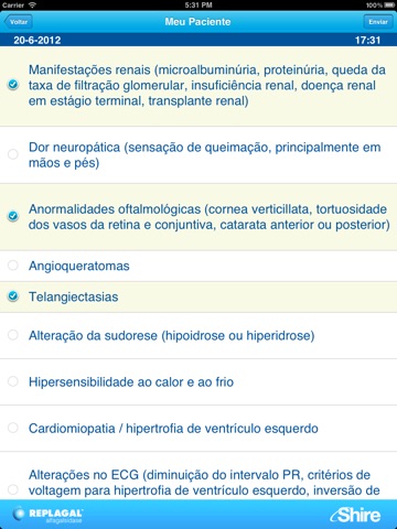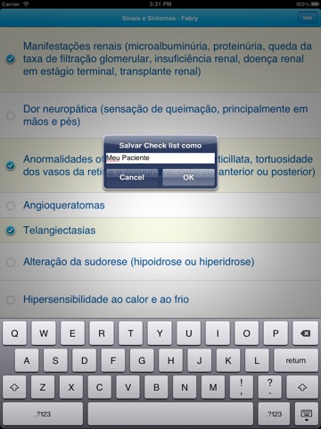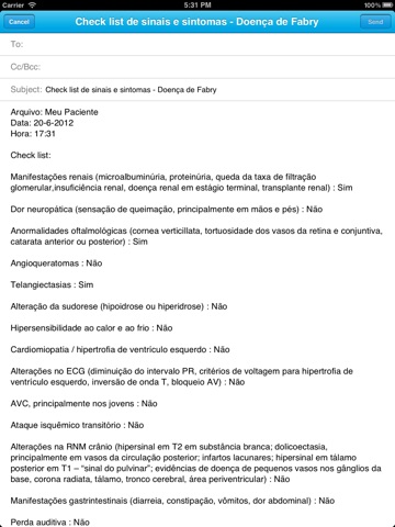 Check list com os principais sinais e sintomas da doença de Fabry / O check list pode ser salvo, arquivado e enviado por e-mail.