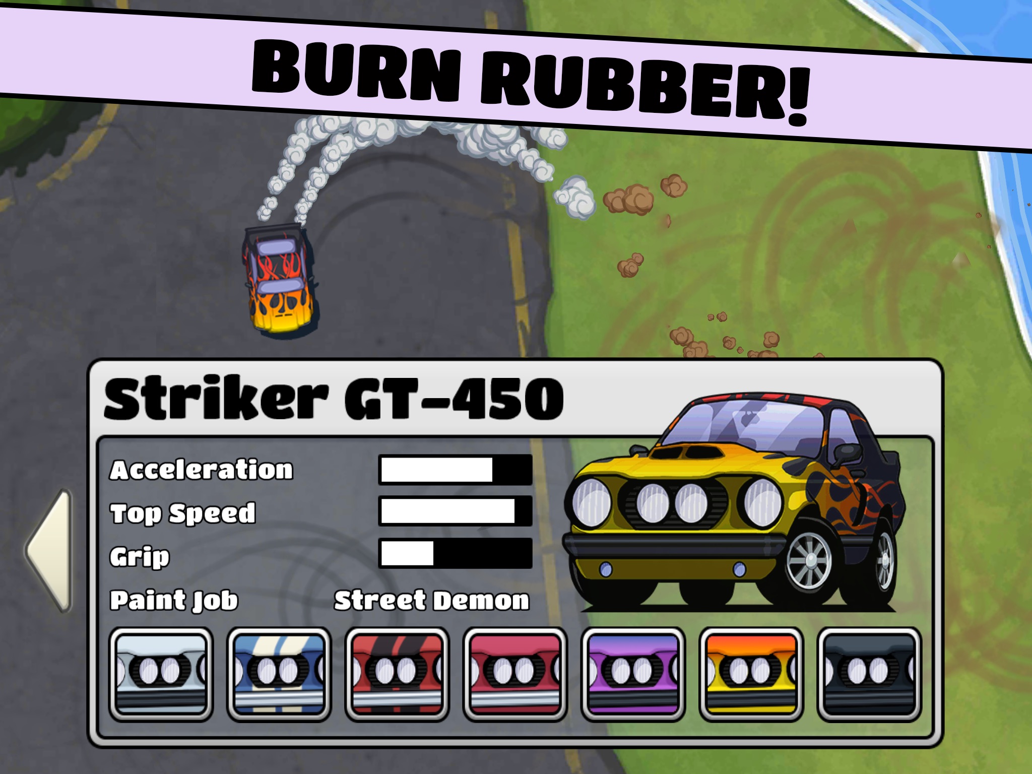 Très bon petit jeu, les graphismes et couleurs sont jolies même sur iphone 4, on reconnaît facilement les modèles de voitures même avec la vie du dessus ! Les épreuves sont pas mal, des courses avec dautres concurrents aurait été sympa, les commandes sont à mon sens trop sensibles ou alors ce sont les voitures qui sont hyper nerveuses car elle tournent trop dun seul coup et donc ne sont pas facile à contrôler !!! Dans lesnemble, cest un très bon petit jeu qui vous occupera un petit moment ! Le seul gros même très gros bémol est la traduction en français !!!!!!! Nutiliser pas le traducteur de Google sil vous plait !