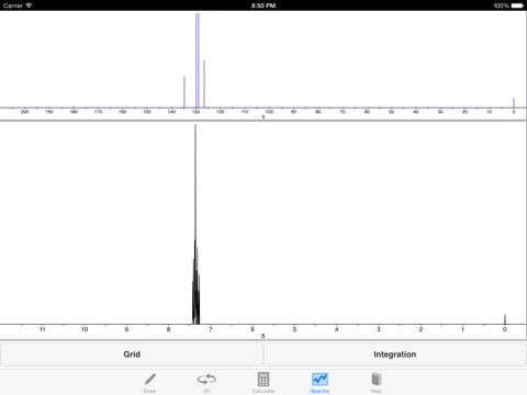 ChemDoodle Mobile is the iPhone and iPad companion to the popular chemical publishing desktop application, ChemDoodle. ChemDoodle Mobile is a calculator for drawn organic structures. There are five main windows: Draw, 3D, Calculate, Spectra and Help. The Draw window shows a typical ChemDoodle sketcher, where you can draw and store your structures. The 3D window allows you to view the drawn molecule in 3D. The Calculate page calculates properties and the Spectra page simulates NMR spectra. All spectra are interactive. The Help page contains a thorough help guide.