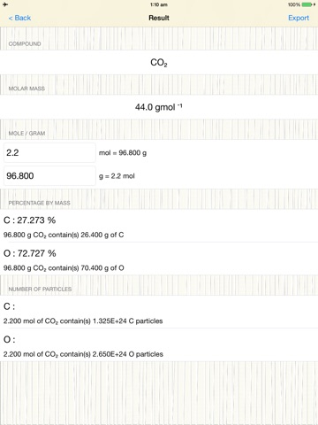 Using our custom keyboard, you can input formula of all compounds for mole calculations. Our apps can also provide result for the percentage by mass of different elements in the compounds.