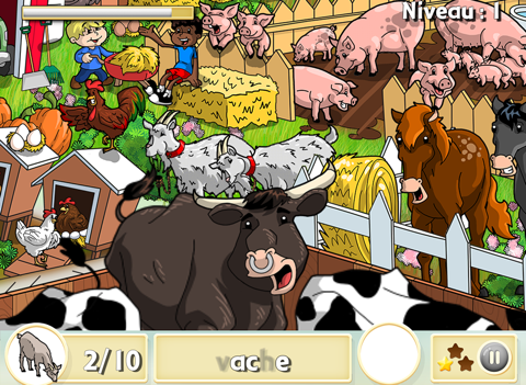 La magnifique illustration, publiée dans le Minimag, est la toile de fond de cette appli te permettant de jouer au détective avec Placotine. Trouve les lettres flottant au-dessus des objets animés; elles te permettront d’épeler un mot lié à la thématique, par exemple celle de la ferme. Aide Placotine à trouver les éléments de cet univers, comme une vache, un cheval, un tracteur, un mouton, une poule, des poussins, un coq, un cochon, une chouette, une dinde et plus encore.