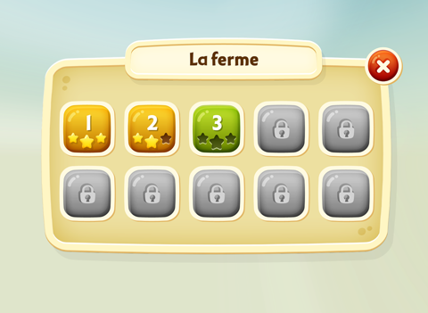 En trouvant les trois types d’éléments recherchés (des objets, des lettres et Placotine) dans le premier niveau, tu obtiendras des étoiles te permettant de débloquer le deuxième niveau de cet univers, et ainsi de suite jusqu’au dixième et dernier niveau. Trouve tous les éléments recherchés à l’intérieur du temps qui t’est alloué. Placotine est cachée à un endroit différent à chaque niveau. Les objets à trouver dans l’illustration, de même que les lettres et la position de Placotine changent de façon aléatoire dès que l’on redémarre l’appli ou que l’on refait un niveau.