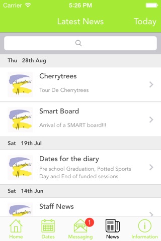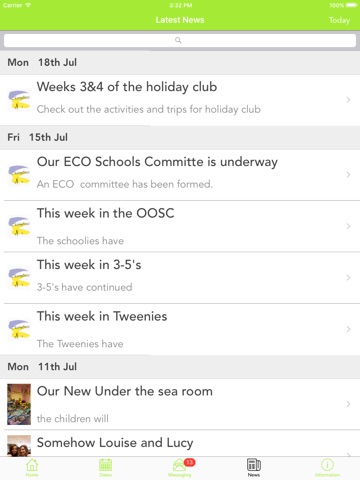 Shows all the latest stories from your school or organisation. If you tap on any news item you will be able to see more detail.