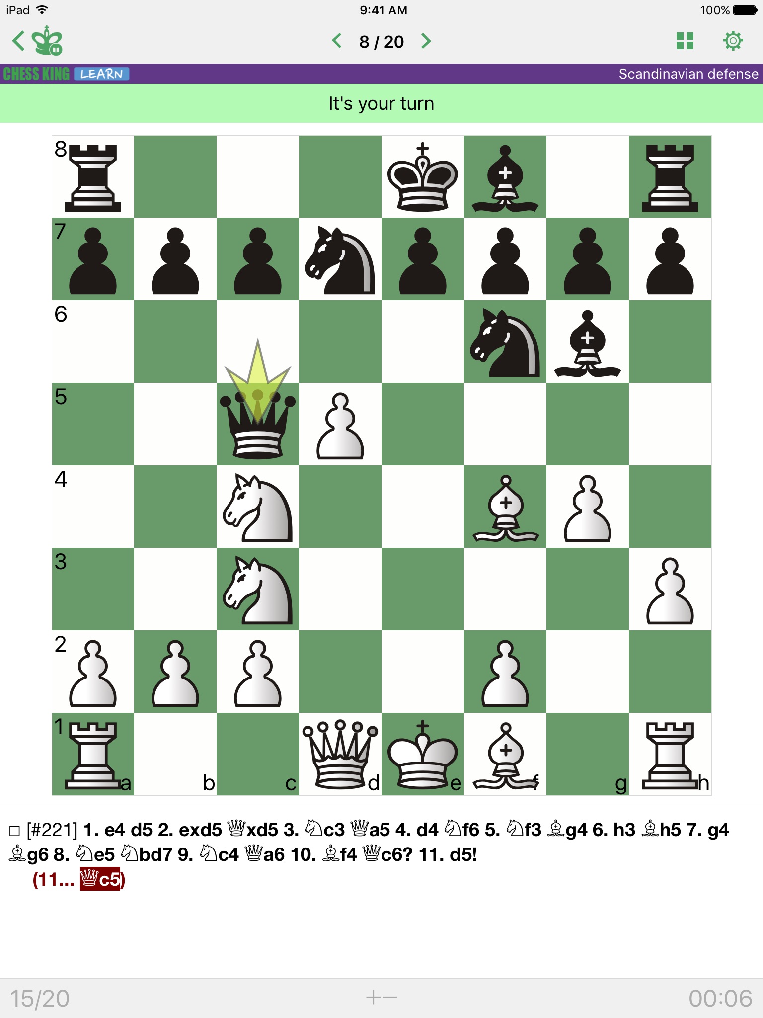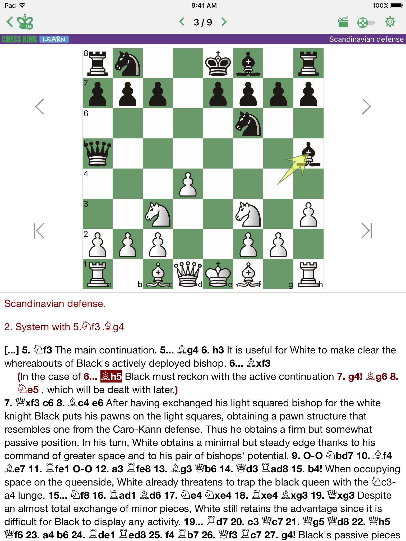 This course is aimed at club and intermediate players and presents the theory and playing hooks in the most sharp and deciding variations of the Scandinavian defense developing after moves 1. e4 d5.