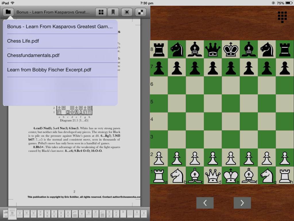 Simply reading a Chess book without a Chess board is not easy unless you are Vishy Anand or Magnus Carlsen! What if you could read your PDF Chess ebooks or magazines as well as move pieces on a Chess board, all in one screen!? This is exactly what this app helps achieve.