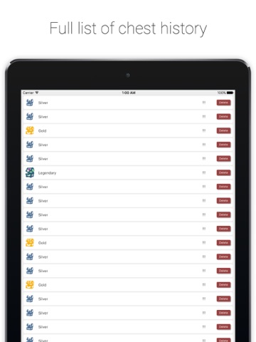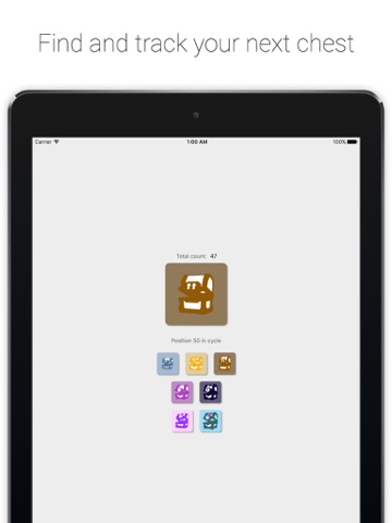 The application requires either the player ID or at least 10 chests to track your position in the chest cycle. Simply select your opened chest from the main screen or from the Today widget, and the application will save and calculate the upcoming chest.