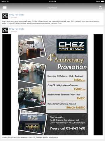 Chez Hair Studios official mobile app gives you the convenience of getting the latest news, promotions and updates.