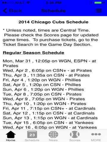 This free app for following the Chicago Cubs includes the latest baseball news, schedule, and records. You can even call the ticket office straight from the app and get directions to the stadium on game day.