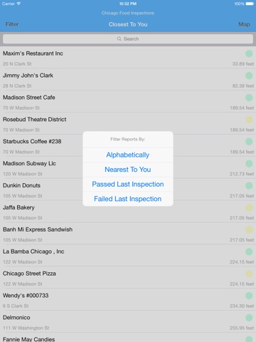 Chicago food inspections provides food inspection reports of restaurants and other food establishments in the city of Chicago. View reports of places near you and search for places by using the search bar or map.