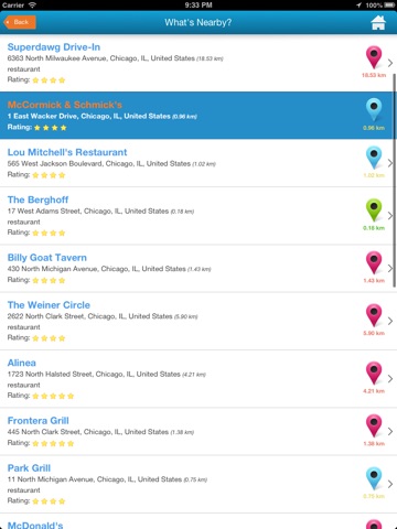 ☆ Place Finder with complete information about object (adress with map, users rating, route, website, phone number)