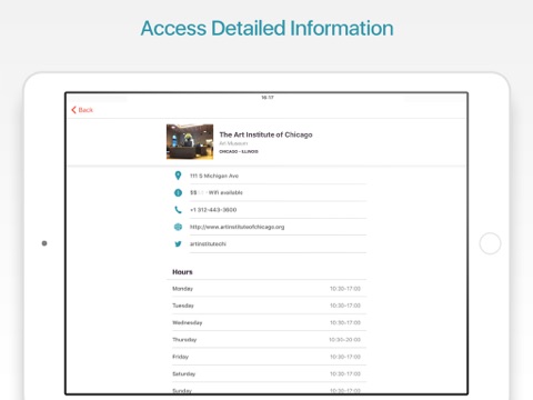 Book the hotel for your next city tour right within the app. Remember and save all places you would like to visit. Create new or individual ones. Mark them with different colors or add notes to them.