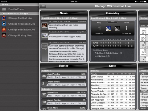 This App needs a lot of work. It still shows a score from a previous game. It shows standings from last year; batting averages from last year; no spring training stats that I can see. It is very limited for a pay-for app. I hope updates are coming soon. Why doesnt the White Sox organization put out an app?