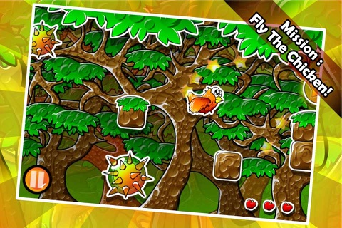 In this game you will be helping the chicken to fly and getting the apples. Easy right? ..well chickens arent meant to fly, so youll be having some challenge here. One tap on the screen will make the chicken do one wing flap, so to make him fly, you need to do more taps, to make him fly higher, your tappings needs to be faster, if there are no taps on the screen then he will go down, be careful dont make him fall! So control your tappings to control how the chicken flies. Your finger need to have a great stamina, because your finger will do a little bit of an exercise! Avoid the sharp plants, use environments to make him bounce, jump, slide, and many more.