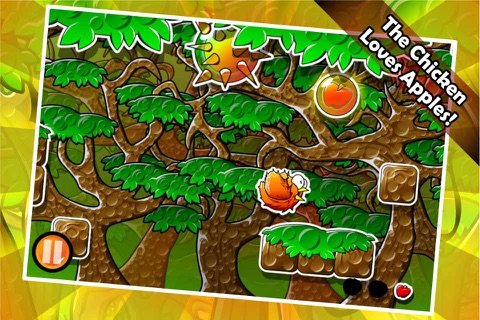 Help the chicken on his adventure flying trough the mighty jungle to find some apples! This chicken loves apples, he will do anything to get some, even if he needs to fly.