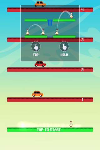 The rule of the game super simple, tap to make the chicken jump and hold to jump to the next level. However, you have to make sure the chicken do not get run-off by the cars! One wrong move and the game is over!