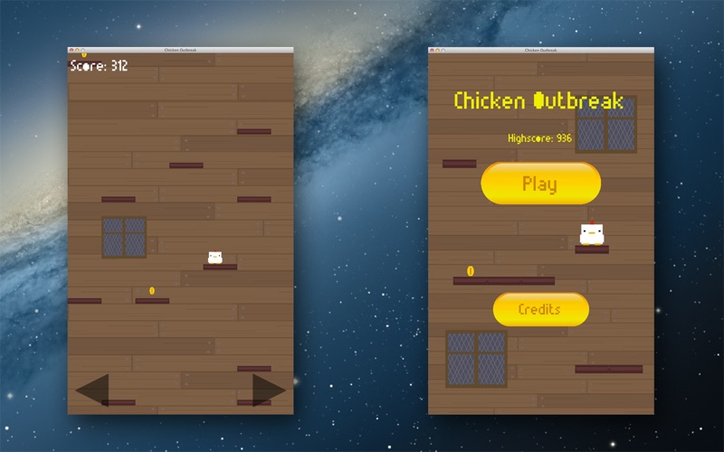 Help the chicken escape from the hen house without touching the ground! Every second and collected grains increase your score.