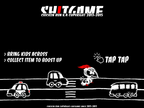 You with your "tappy" finger will help those little chickens pass the road. Try to control chicken simply by tapping, avoid vehicles and sometime boom also !!. While running, you may got some good item drop from the sky (maybe jeus want to help them too) to boost up.