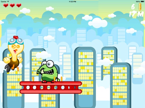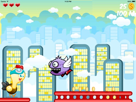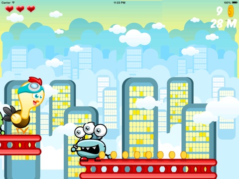 Join the snappy Chicken Runner as he jumps and dodges through the endless monsters high up in the sky! In this exciting and heart-pumping game, you touch the screen to control Timmys action. Avoid the sword-wielding monsters, traps, obstacles and random, huge gaps between the beams. Race to the end and see how far can you go unscathed with only 3 chances at hand.