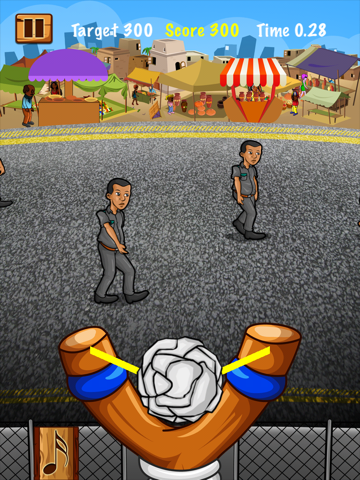 Help him aim and shoot papers and fish at Market goers and animals. Dont worry he is not going to hurt them, but if he hits the target 3 times they will fall flat on their face! You will earn points every time you hit the target.