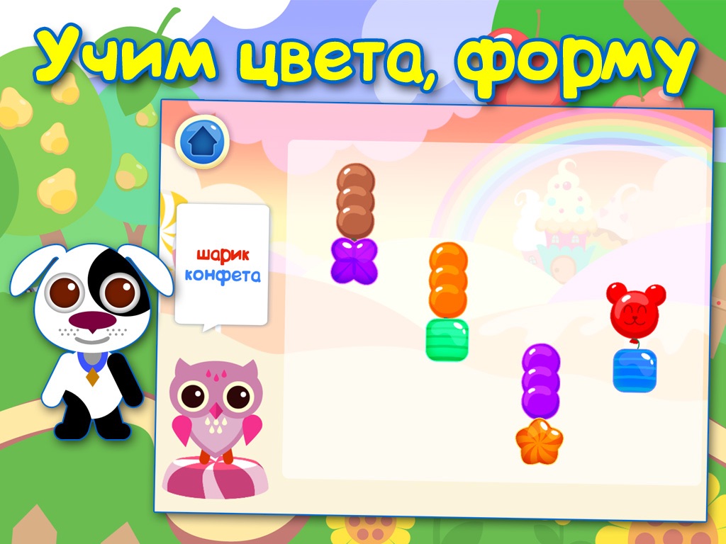 Мои близняшки влюбились в голос из этой обучалки! Веселый игровой процесс много интерактивных штучек. Прикольно тапать на яблоки и смотреть что происходит )))