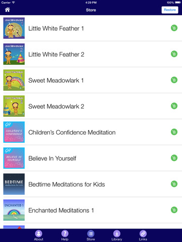 - In-app purchases featuring many childrens bedtime sleep meditations for boys and girls of all ages.